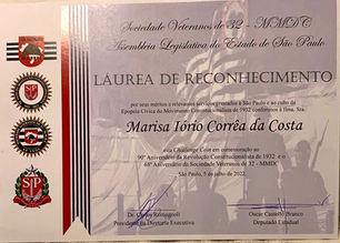 A convite do Deputado Estadual Oscar Castello Branco, recebe Láurea de Reconhecimento no Ato Solene em Comemoração aos 90 anos da Revolução Constitucionalista de 1932.
